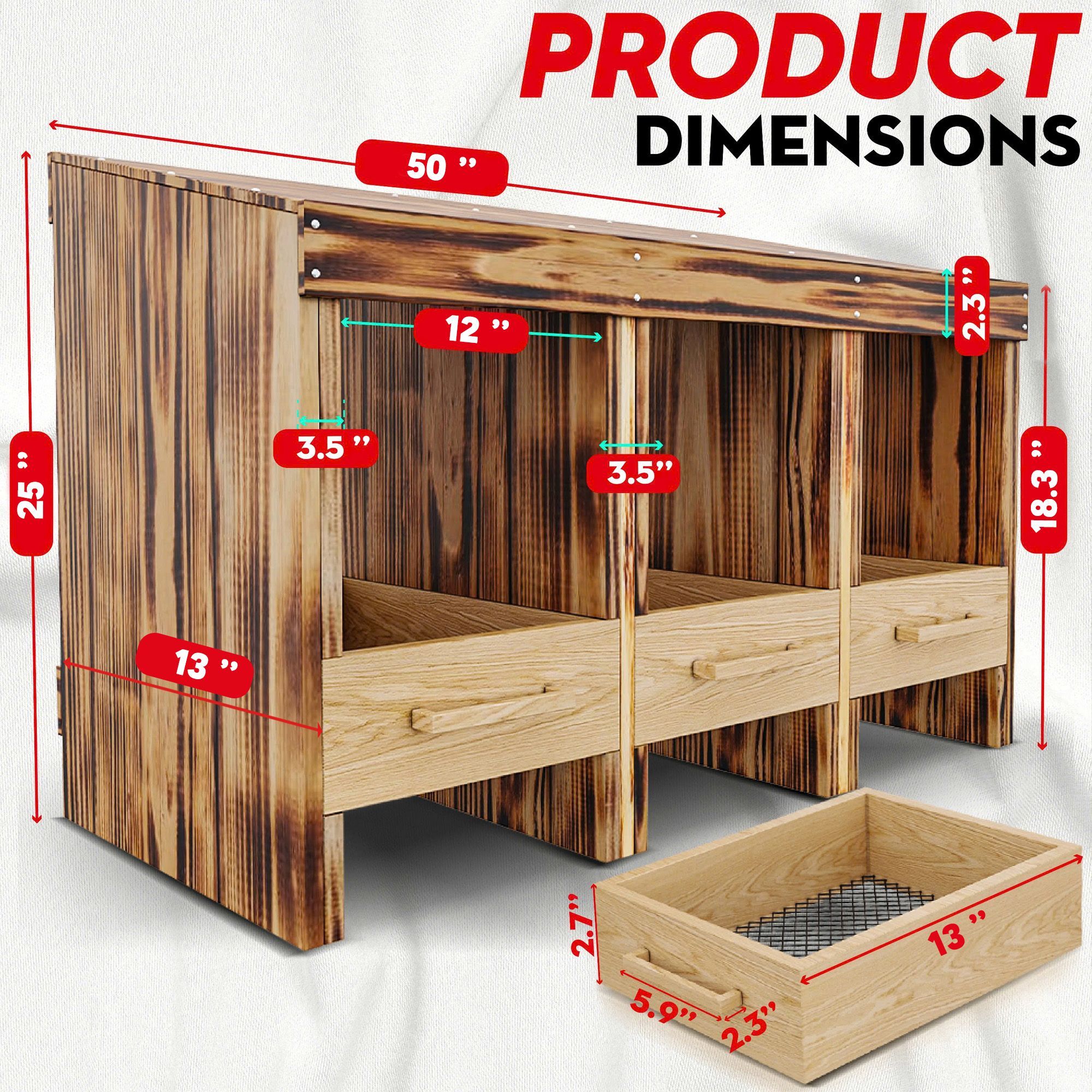 Deze robuuste kippenhok is gebouwd voor duurzaamheid en weerweerstand. Het is geconstrueerd uit massief FIR-hout met 1,5 cm dikke panelen, wat een stevig frame biedt. De buitenafmetingen van de Coop zijn 127 × 33.02 × 63,58 cm (lengte x breedte x hoogte), met een ruim interieur met behoud van een compacte voetafdruk die geschikt is voor gebruik in de achtertuin.